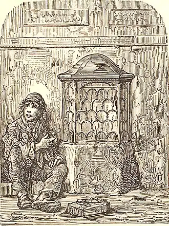 It appears to have been routinely used in this period as a location for the posting and promulgation of a variety of bills, notices, and advertisements.[12] In 1608 it was listed in a poem by Samuel Rowlands as one of the "sights" of London (perhaps the first time the word was used in that sense) shown to "an honest Country foole" on a visit to town.[13][14]
