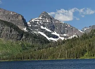 Like other mountains in Glacier National Park, it is composed of sedimentary rock laid down during the Precambrian to Jurassic periods. Formed in shallow seas, this sedimentary rock was initially uplifted beginning 170 million years ago when the Lewis Overthrust fault pushed an enormous slab of precambrian rocks 3 mi (4.8 km) thick, 50 miles (80 km) wide and 160 miles (260 km) long over younger rock of the cretaceous period.[5]
