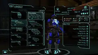 In the original game, players can initially field four soldiers at a time, which can be upgraded to six soldiers later in the game. In the mod, players begin the game able to deploy six soldiers, which can be upgraded to eight, with certain missions allowing the player to bring as many as twelve soldiers. The number of classes that the soldiers can be is doubled from four to eight, with each original class being split into two in the mod. Each class has a corresponding class of cybernetic MEC soldier that they can be upgraded into.[5][9][13] The mod also adds new classes of weapons including battle rifles, carbines, marksman rifles, and sub-machine guns. These choices affect soldiers' damage and movement compared to the assault rifle from the base game.[11](at 0:45) New usable items and armor types are also added.[5] The mod increases the number of soldier abilities and gives players three choices instead of two when selecting new abilities each time a soldier levels up. Additionally, some of the abilities that were only available to one class in the base game became available to other classes in the mod. The mod increases psionic abilities, and gives players access to psionics earlier than in the base game.[5][13] Underpinning all of these changes is a larger technology tree. Research also takes longer and has a higher cost.[9][11][13](at 1:20)