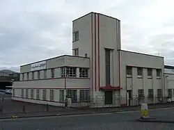 The area contains one of the city's main bus depots belonging to Lothian Buses, now named the Longstone Garage but formerly called the Lothian Regional Transport Office.[13] The building was designed by T Bowhill Gibson and Laing in 1949 in the art deco style and was built in 1955.[13] It has space for 220 buses.[16]