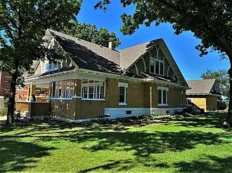 The Loomis–Parry Residence is a mixed-style residential house, constructed in 1917, in Augusta, Kansas. It is a 2-story structure, with an irregular floor plan, that retains nearly all of its original materials, including exterior brick walls and double-hung wooden windows. It has been continuously owned by the same family who originally constructed it. A widow named Henrietta Loomis commissioned the house as a residence for herself and her daughter.[2] Her husband's family, who had been farmers, owned land in Butler County where oil was discovered in the early 1900s. The oil revenue financed the construction. The Loomis–Parry Residence was added to the National Register of Historic Places in 2009.[3]