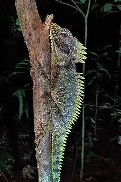 Lophosaurus dilophus, the crowned forest dragon or Indonesian forest dragon, is a large arboreal agamid lizard found in New Guinea and the Moluccan islands, Indonesia.