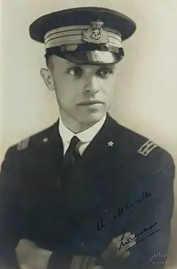 In 1921 he graduated in engineering in the Polytechnic University of Milan; he then commanded a torpedo boat squadron.[2] In 1926, after promotion to lieutenant commander, he served as the executive officer on the cruiser Libia, deployed to the Far East, and then he commanded the Italian Naval Detachment in Tientsin from May 1927 to May 1928.[1][2] Between 1928 and 1929, with the rank of commander, he was the commanding officer of the destroyers Francesco Nullo and Turbine.[1] He was then assigned for some time to the Naval Arms and Armaments Office in the Ministry of the Navy; in 1934 he attended the Naval Warfare Institute.[2] In 1935-1936 he participated in the Second Italo-Ethiopian War, in command of the light cruiser Taranto.[1][2]