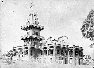 In 1894, businessman James Grave built the Osborne Hotel on a cliff-top in Claremont. Considered to be Perth's finest hotel,[1] it had panoramic views of the Indian Ocean and Swan River and included a tower and raised turrets and was surrounded by two acres (0.8 ha) of landscaped gardens.[2] In 1898 Graves found himself "financially embarrassed" and sold the hotel to William Dalgety Moore.[3]