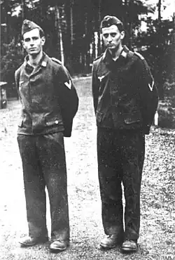 This pair walked to a nearby airfield and attempted to steal a Junkers W 34 while wearing fake German uniforms.[1] They had to abandon the attempt when the rightful crew appeared to fly away the aircraft. The next day, they returned and tried to steal a biplane.[1][2] They were recaptured, along with all the other escapees. The other 24 POWs were returned to camp, but Welch and Morison were sent to Oflag IV-C at Colditz.[1]