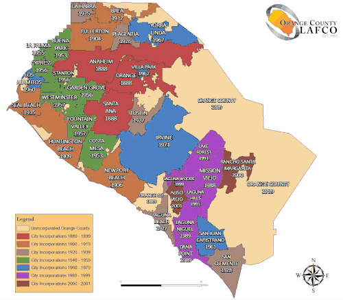 Times publisher Otis Chandler watched the [suburban sections] process with growing dissatisfaction, then decided that the only solution is for a newspaper to grow the way a modern city-community grows. . . . an ever-expanding circle of satellite towns, with citizens showing an increased interest in local affairs. To give them the local news they want, Chandler decided there was no substitute for being on the spot. The result appeared last week: the Orange County edition, edited, printed and partly written by a 32-man Times satellite staff operating entirely in Orange County.[10]