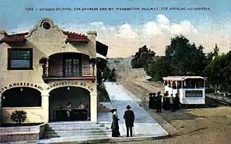Inspired by nearby Angels Flight on Hill Street in Downtown Los Angeles, the railway entered service in May 1909 to promote the area as a hillside suburb. Built by developer Robert Marsh, the "L.A. & Mt. Washington Ry. Co." had of a pair of electrically powered, counterbalanced trolley-style cars connected to an underground steel cable loop running the length of Avenue 43—then a dirt road—to Marsh's Mount Washington Hotel at the 940 ft summit.