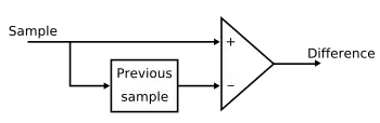 Lossless JPEG[3] is actually a mode of operation of JPEG. This mode exists because the discrete cosine transform (DCT) based form cannot guarantee that encoder input would exactly match decoder output. Unlike the lossy mode which is based on the DCT, the lossless coding process employs a simple predictive coding model called differential pulse-code modulation (DPCM). This is a model in which predictions of the sample values are estimated from the neighboring samples that are already coded in the image. Most predictors take the average of the samples immediately above and to the left of the target sample. DPCM encodes the differences between the predicted samples instead of encoding each sample independently. The differences from one sample to the next are usually close to zero. A typical DPCM encoder is displayed in Fig.1. The block in the figure acts as a storage of the current sample which will later be a previous sample.