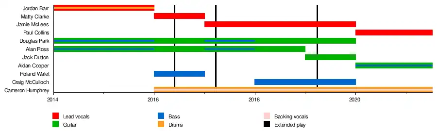 - Douglas Park – guitar (2014–2020), bass (2014–2016, 2017–2018)
