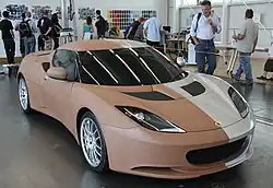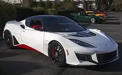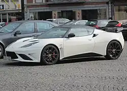 The Lotus Evora is a sports car produced by the British company Lotus.[1] The car, which was developed under the project name Project Eagle, was launched on 22 July 2008 at the British International Motor Show.[4] The Evora S was launched in 2010 with a supercharged 3.5-litre V6. A facelifted and more powerful Evora 400 model was unveiled at the 2015 Geneva Motor Show,[5] followed by another more powerful variant, the Evora GT430, which was unveiled in 2017.[6]
