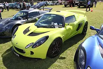 The original Exige was launched in 2000 with a naturally aspirated 1.8 L Rover K Series Inline-four engine in VHPD (Very High Performance Derivative) tune. It is rated at 177 hp (132 kW; 179 PS) at 7,800 rpm in standard form.[2] There was also a "track spec" version with 190 hp (142 kW; 193 PS) available. The car has a five-speed manual gearbox, and a claimed top speed of 219 km/h (136 mph). 0–97 km/h (60 mph) was achieved in 4.7 seconds and 0–100 km/h (62 mph) in 4.9 seconds.[2]