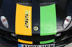 In 2007, Lotus released the Exige Sport 240, limited to 6 units for the Australian market only. The output from the 1.8L Supercharged Inline-4 was increased to 179 kW (240 hp; 243 PS), a 10% increase over the Exige S, and 230 N⋅m (170 lb⋅ft) thanks to upgraded fuel injectors and a new engine control unit. 0–100 km/h (0-62 mph) times improved to 4.2 seconds, and the top speed increased to 249 km/h (155 mph). At the time, the Sport 240 was the fastest Lotus ever sold in Australia. The Sport 240 in fitted with Lotus Sport adjustable traction control, developed by from the Lotus Sport UK GT3 motorsport program. The system features a driver-adjustable control knob with 18 different presets of traction control as well as electronic launch control. The Sport 240's brakes were also upgraded, with AP Racing four-piston callipers with 308 mm (12.1 in) two-piece vented discs and braided hoses on the front, and Brembo single-piston callipers with 288 mm (11.3 in) rotors in the rear. Pagid Racing brake pads are fitted all around. The suspension utilises one-way adjustable dampers with adjustable ride height and an adjustable front sway bar. The Sport 240 comes equipped with R compound Yokohama A048 LTS tyres, 195/50x16 in the front, and 225/45x17 in the rear. It also includes a BS4 T45 steel roll-over hoop and struts. The interior also receives its fair share of upgrades, including elements of a Touring Plus package. It comes with a lightened, 15 kg (33.1 lb) air conditioning system, sports seats finished in black leather with a harness bar. It features an orange Exige logo on the seats and floor mats, door trims, centre console and stitching. The car also received Lotus Sport forged 5-spoke OZ Racing alloy wheels, body mods including a roof scoop to supply more air to the intercooler, two bespoke colour choices (Blaze Orange and Sapphire Black), and limited edition badging. The Blaze Orange models received blacked out highlights including the front splitter, rear wing endplates, wheels and a rear beaver panel infill around the taillights. The Sapphire Black models received a Chrome Orange front splitter and rear wing endplates. The Sport 240 went on sale at the 2007 Australian International Motor Show at a price of $149,990.[7][8]