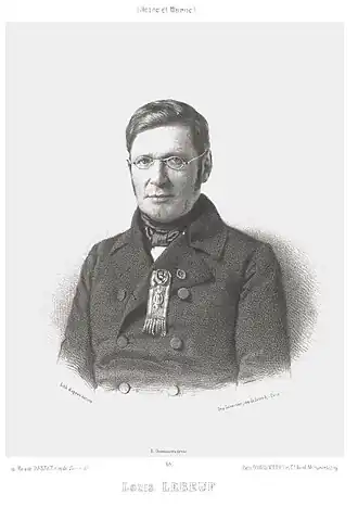 Louis-Martin Lebeuf was born on 26 May 1792 in L'Aigle, Orne. His parents were Martin Lebeuf, a notary in L'Aigle, and Félicité Hilliere. On 12 November 1922 in Paris he married Claudine Athénaïs Marie Pollissard (1804–1887), daughter of Adrien Edmé Pollissard, a Paris merchant, and Alexandrine Marie Denise Pajot.[1] Their children were Adrien Louis Lebeuf (1824–1876), faience manufacturer, Alfred Louis Lebeuf (d. 1859), diplomat. and Alexandrine Louise Marie Lebeuf (1830–1865).[1]