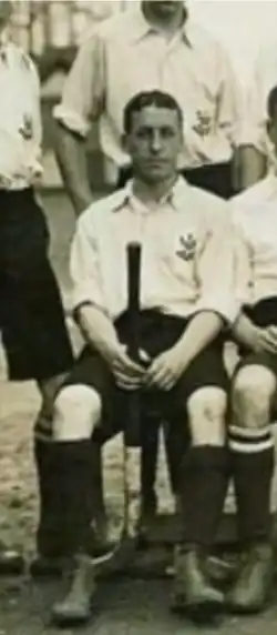 He started field hockey as a part of Northampton's team as a full-back and left-back, and then went on to earn nine caps as part of the England men's national field hockey team in the same positions.[4] One of those appearances were at the 1908 Summer Olympics that were held in London. In the field hockey competition that was 29 to 31 October, they had never lost a match. They would eventually win the gold medal in the event,[a][5] making Baillon the only Falkland Islander to win a gold medal at the Olympic Games as of June 2025.[1]