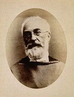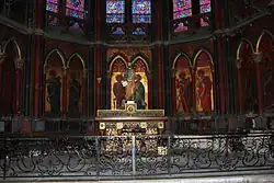 Louis Steinheil studied with Henri Decaisne and painted in nearly every medium, but gave special attention to glass painting and church decoration. Among his works are Saint Philomela (1841); Mother (1847), Nantes Museum.[1] He and Alexandre-Dominique Denuelle were commissioned to paint the chapel of Our Lady of Guadeloupe, consecrated in September 1865, which was built for the Empress Eugénie beside her Villa Eugénie in Biarritz.[2] In 1876 he was commissioned to execute frescoes in the Strasbourg Cathedral.[1]