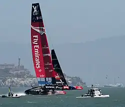 The Louis Vuitton Cup is the name of the Challenger Selection Series sailing competition from 1983, named after its sponsor, Louis Vuitton. The winner of the competition became the challenger to compete with the defender of the America's Cup. The competition for the 2017 America's Cup changed format and name to the Louis Vuitton Challenger’s Trophy.[1] The following series, in 2021, was named the Prada Cup after its new sponsor.[2] In 2024 the challenger selection series will again be named after Louis Vuitton.[3] Five out of the nine winners of the Louis Vuitton Cup competitions subsequently won the America's Cup itself.