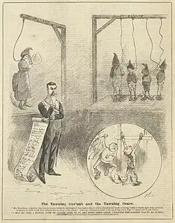 By this time, after the extensive newspaper coverage of the case, there was widespread public debate regarding the death sentence imposed on Louisa Collins, with arguments both for and against a reprieve. A number of petitions calling for mercy were sent to the New South Wales Governor.[55] On 3 January 1889 the Executive Council considered the case of Louisa Collins, but deferred their final decision.[56] That evening a public meeting was held at the Sydney Town Hall, convened by a group of men that included members of the New South Wales parliament, for the purpose of forestalling the execution of Louisa Collins. The meeting carried a motion calling for commutation of the death sentence passed upon Collins and a deputation was formed to present a memorial to the Governor, Charles Carington, urging him to extend the royal prerogative of mercy to the prisoner.[57]
