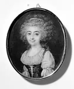 Louise Meijerfeldt was admired for her beauty and charm and often mentioned in diaries, letters and memoirs of the era. Alongside Augusta von Fersen and Ulla von Höpken, she became known as one of "the three graces" in the poem "Gracernas döpelse" (The baptism of the graces) by Johan Henric Kellgren, which was written in circa 1779 and published in 1781.[1] Kellgren had been employed as the private teacher of her sons from 1777 to 1780.[2] The poet Johan Gabriel Oxenstierna, once the governor of her two sons, referred to her as: "a beauty, whom the old world would have worshipped on their knees as Diana and Venus".[3]