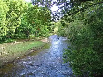 The Lourens River is about 23 kilometres (14 mi) long, flowing from the Hottentots Holland Mountains into False Bay at Strand. Its upper reaches are relatively undisturbed and are privately owned. However, the lower part of the river flows through developed areas as well as past fynbos and plantations of invasive alien trees. This natural area is threatened by pollution as well as by invasive alien weeds such as Kikuyu grass and the Black Wattle tree.[1]