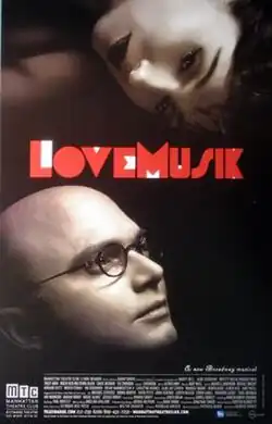 LoveMusik is a musical written by Alfred Uhry, using a selection of music by Kurt Weill. The story explores the romance and lives of Kurt Weill and Lotte Lenya, based on Speak Low (When You Speak Love): The Letters of Kurt Weill and Lotte Lenya, edited and translated by Lys Symonette and Kim H. Kowalke.[1] Harold Prince had read Speak Low and suggested the idea for a musical to Uhry. Uhry and Prince worked on LoveMusik for four years to develop it into a stage work.[2] The story spans over 25 years, from the first meeting of Lenya and Weill as struggling young artists, to their popularity in Europe and America, to Weill's death from a heart attack at age 50.