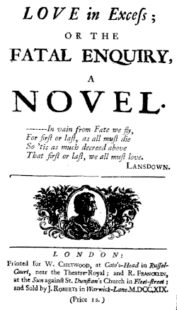 - ^ Haywood, Eliza (2000). Oakleaf, David (ed.). Love in Excess (2nd ed.). Broadview Press. p. 170.