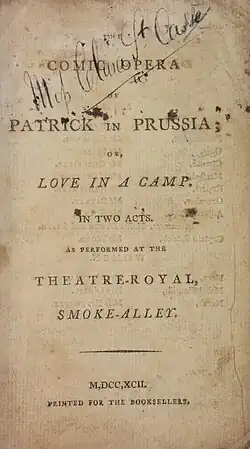 Patrick in Prussia, or Love in a Camp is a 1786 comic opera with music by William Shield and a libretto by John O'Keeffe. An afterpiece, it was a sequel to the 1783 hit The Poor Soldier with the characters now serving in the Prussian army.[1]