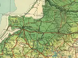 Historically, the whole region of Prussia had been under the State of the Teutonic Order. The area of Lower Prussia was viewed as an important location for the construction of defensive castles prior to the Polish–Lithuanian–Teutonic War, with the construction of them being personally overseen by the Grand Master Ulrich von Jungingen.[4] Following the establishment of the Duchy of Prussia, Lower Prussia was established by Albert of Prussia as part of an administrative division of the Duchy, with Upper Prussia and Sambia making up the remainder of the three divisions. Lower Prussia was then subdivided into elderships.[5] During the mid-1500s, Lower Prussia became a place where a large number of anabaptists settled, with the majority settling near Danzig.[6]
