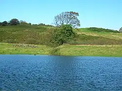 Marked on Ordnance Survey maps as "The Lochs", it was locally known as the Lowes Loch and lies on the old "Lowes Lands".[1] Four lochs may have once been present, a small one in front of Lows Cottage, a second along to the west of the surviving loch, and a smaller fourth one, now partly drained by a deep ditch, sitting next to the older of the two Lochlands Farms ruins. Before the Cadgerford Burn was deepened the lochs level would have been higher and may have once drained to the west and east.