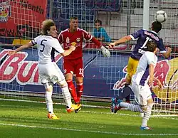 In the 2010–11 season, Biglia started the season well when he set up a goal for Cheikhou Kouyaté to score the winning goal, in a 1–0 win over Gent in the Belgian Super Cup.[51] However, in a 4–1 win over Eupen in the opening match of the season, Biglia suffered a shoulder injury and was sidelined for weeks.[52] Following Deschacht's injury, he was served as club captain for the time being until Deschacht returned, only to be injured himself and sidelined for several weeks.[53][54] He further suffered a hamstring injury that kept him out for the rest of the year.[55] In the January transfer window, Turkish Galatasaray renewed their interest in him and made a bid of €4.5 million.[56] However, the move never materialized due to a lack of funding.[57] Prior to the interests, Biglia said he would not leave the club in January.[58] Although he was injured again for the fourth time in the 2010–11 season, Biglia made 35 appearances in all competitions.[59]