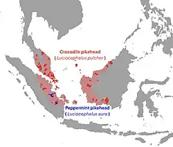 Luciocephalus is a genus of gouramies native to Southeast Asia.[2] Both are extremely specialized niche predators native to parts of Thailand, Malaysia, Indonesia and Brunei Darussalam; in addition, both species - like a number of other osphronemid genera - are paternal mouthbrooders.