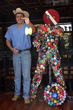 A founding board member of the American Yo-Yo Association, he continues to serve as chairman of the world records committee. Meisenheimer is best known for his book Lucky's Collectors Guide to 20th Century Yo-Yos and his Guinness World Record for the largest yo-yo collection. A copy of Lucky's Collectors Guide to 20th Century Yo-Yos is part of the Smithsonian Institution collection. He also created the parody poster "Lucky's Periodic Table of Yo-Yos" and Mr. Bandalore, a statue made of 603 different yo-yos.[7][8] His yo-yo collection also features the world's largest wooden yo-yo, the Shakamak Yo-Yo, which is 6 feet tall and weighs 820 pounds.[9]