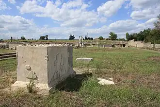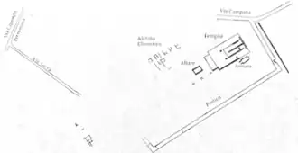 Inscriptions show that the sanctuary or lucus of Feronia lay behind the eastern wall of the forum and was accessible through a small portico built in the early Augustan period by the duumvir A. Ottavius.[6]
