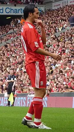 García did not make so much of an impact in the 2005–06 campaign, although he weighed in with some vital goals, including one against Chelsea to put them out of the FA Cup in the semi-finals.[18] He was suspended for the final victory over West Ham United, having been sent off in a league game just days after his semi-final winner, against the same opposition.[19] Early into the season, he also scored the third goal in the Reds' 2005 UEFA Super Cup 3–1 final defeat of CSKA Moscow.[20]