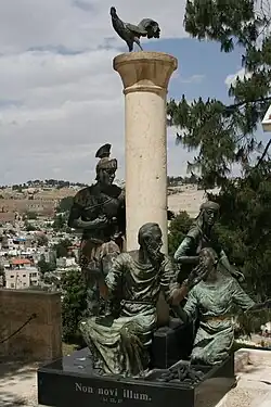 The words reflect Jesus' previous instructions to his disciples on how to pray (the Lord's Prayer, Luke 11:2–4), although the words "thy will be done, on earth as it is in heaven" do not appear in the earliest-known versions of Luke's Lord's Prayer.[27] The Pulpit Commentary suggests that "the temptation in question was the grave sin of moral cowardice into which so soon the disciples fell".[28]