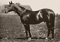 In 1925, Luke McLuke was owned by J. Oliver Keene and stood at stud at Keeneland Stud in Lexington, Kentucky.[11] He sired 11 stakes winners, including Nellie Morse, Anita Peabody, and Mr. Sponge.[12] Nellie Morse won the 1924 Preakness Stakes and was named the 1924 Champion Three-Year-Old-Filly. Anita Peabody won the Futurity Stakes and the Debutante Stakes and was named 1927 Champion Two-Year-Old Filly. In all, Luke McLuke sired 85 foals in 13 foal crops; 55 of his foals started races, with 40 of those starters winning races for a total of $449,783.[13] His daughter Nellie Morse was the dam of Nellie Flag, the 1934 Champion Two-Year-Old Filly.[14] After her racing career was over, Nellie Flag went on to become one of the foundation broodmares at Calumet Farm in Kentucky.[15] A grandson was Three Bars, out of a Luke McLuke daughter named Myrtle Dee. Three Bars went on to become an influential sire of Quarter Horses,[16] and was named to the American Quarter Horse Hall of Fame in 1989.[17] Another daughter, Nursemaid, produced the 1966 Kentucky Broodmare of the Year, Juliet's Nurse.[18] Luke McLuke's granddaughter Nellie Flag was, in turn, the dam of Mar-Kell, the 1943 Champion Handicap Mare.[14]