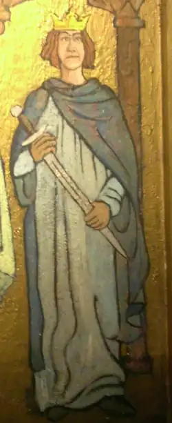 ![]() Lulach posthumously depicted in the Edinburgh Castle | |