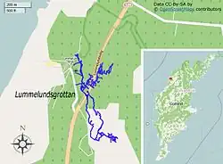 ![]() Approximate location, size and shape of the explored parts of the Lummelunda Cave. | |