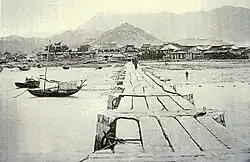 Construction on the bridge began in 1873 and was completed in 1875.[1] The bridge was about 210 metres (690 ft) long[3] and 2.6 metres (8.5 ft) wide and was built from granite. At the time, it was the longest and toughest stone pier in Hong Kong. It was divided into the south and the north.[4] Due to mud deposition surrounding the pier, its length was extended to 300 metres (980 ft) with wood. During the Japanese occupation of Hong Kong in WWII, the bridge was completely covered up when the nearby Kai Tak Airport was expanded.