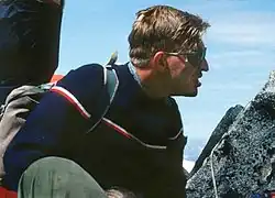 He was recruited by Barry Bishop, who he had been with when he summitted Everest in 1963, to join a team on a secretive mission to Nanda Devi in 1965.[6] The joint CIA / Indian Intelligence Bureau mission involved placing a nuclear powered listening device on the mountain. The 1965 mission was unsuccessful but in 1966 and 1967 other people returned to the area and eventually placed an equivalent device on the nearby Nanda Kot.[7][8]