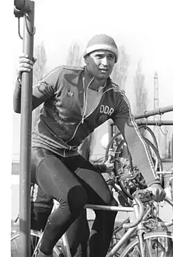 He competed for East Germany in the 1980 Summer Olympics held in Moscow, Soviet Union in the individual sprint event where he finished in first place. He missed the 1984 Summer Olympics due to the Soviet led boycott but returned to the 1988 Summer Olympics in Seoul, South Korea where he won a second gold medal in the individual sprint.[2] In October 1986, he was awarded a Star of People's Friendship in gold (second class) for his sporting success.[3] Between 1979 and 1987 he was four times world champion in individual sprint.