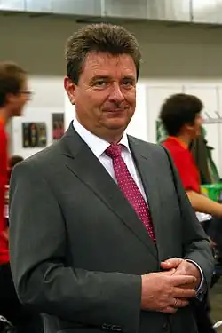Trümper was born 1955 in Oschersleben and became a teacher for chemistry and biology. He was Mayor of Magdeburg from 2001 to 2022. In the European migration crisis he was a sharp critic of the policy of his party SPD and left the party for some while.[1] In January 2025, he confirmed his final resignation from the party due to dissatisfaction with the SPD's political actions.[2]