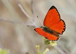 Lycaena thetis, the golden copper, is a small butterfly found in Greece, Asia Minor - Armenia (highlands), Iraq, Iran, Baluchistan, Chitral and Ladak that belongs to the lycaenids or blues family.