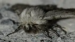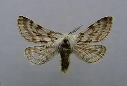 The wingspan is 28–40 mm for males. Females are wingless. Adults are on wing from April to July in one generation per year.