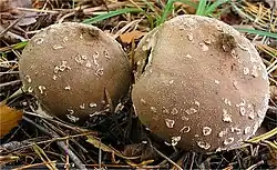 Lycoperdon mammiforme is a rare, inedible type of puffball mushroom in the genus Lycoperdon, found in deciduous forest on chalk soil. It is found in Europe. The fruit body is spherical to pear shaped, at first pure white with slightly grainy inner skin and an outer skin which disintegrates in flakes that are soon shed, later ochre, chocolate-brown when old, up to 7 cm (2.8 in) in diameter.[2]