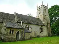There was probably a church at Lydiard Millicent in the late 11th century. The present parish church is a rebuilding from the 14th century; the nave is from that period and was re-roofed in the 15th or 16th. The chancel was largely rebuilt in 1871 and the west vestry (which now houses the organ) was created in 1924.[14][15]