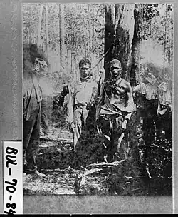 Reed and Cato were also associated with the turpentine industry, a major employer in Bullock County. Although Reed was a tenant farmer and Cato a farm laborer at the time, they had previously worked in turpentine camps in the area. The need for seasonal laborers in the turpentine camps attracted young African-American workers from outside of the county. Many whites considered the itinerant workers in those camps to be "shiftless and disruptive", raising the level of vice and crime in the area. The Statesboro News reported that the "good farmers" of the county had been awakened by the Hodges' murders "to the fact that they were living in constant danger and that human vampires lived in their midst, only awaiting the opportunity to blot out their lives by murder and the torch."[10] While Reed was a native of Bulloch County, Cato was from South Carolina, and had first come to Bulloch County to work in a turpentine camp.[11]