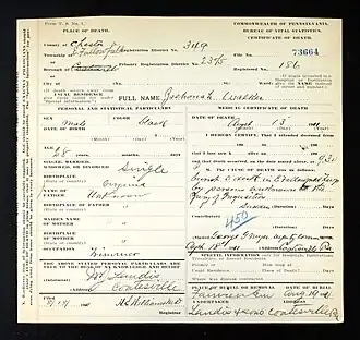 ![]() Zachariah Walker death certificate | |