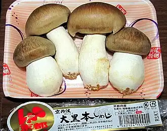 This species is considered edible.[3] Several groups, such as Takara Bio[4] and Yamasa,[5] have patented methods to cultivate hon-shimeji, and the cultivated mushroom is available from several manufacturers in Japan.[6][7][8]