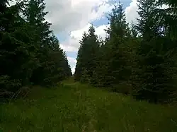 On the summit area, there is a triangulation station marked on maps with the number 19, at an elevation of 1,092.30 metres above sea level, with geographical coordinates of 50°05′47.45″N 17°17′29.64″E / 50.0965139°N 17.2915667°E.[5] Next to it stands a steel post warning against damage, with a plaque that reads Státní triangulace (English: State Triangulation – Damage is punishable). This point is located about 110 metres southwest of the summit.[5][11] Some maps take the position of the main triangulation station or a nearby spot as the mountain's summit, which causes discrepancies in the location.[12] The State Administration of Land Surveying and Cadastre lists the highest point of the summit at 1,098.6 metres above sea level, with geographical coordinates of 50°05′50.1″N 17°17′29.4″E / 50.097250°N 17.291500°E.[5]