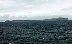 Málmey (Icelandic pronunciation: [ˈmaulmˌeiː] ⓘ) is an uninhabited island off the northern coast of Iceland, one of the three islands in the Skagafjörður bay, along with Drangey and Lundey. It is located on the east side of the bay. Málmey is a long and narrow island, about 4 km long and about 1 km wide, and it is narrower at both the northern and southern ends. It is surrounded by cliffs on all sides, and it reaches an elevation of 156 m above sea level in its northern part.[1][2][3][4]